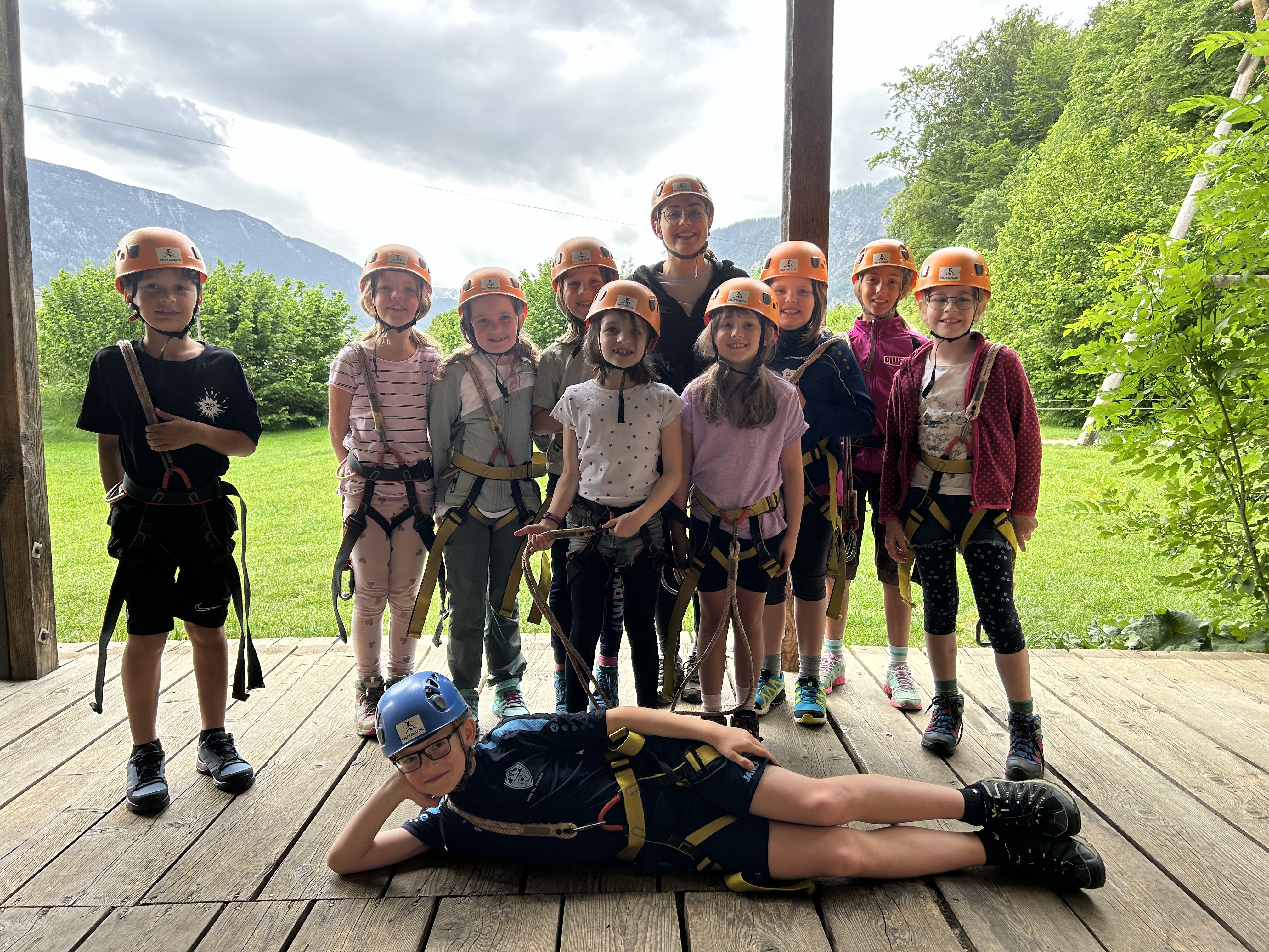 Ein spannendes und abwechslungsreiches Programm erwartete die Kinder der 3. Klasse bei den Projekttagen in Obertraun. Mit einem aufregenden Klettererlebnis im Hochseilgarten beziehungsweise mit hilfreichen Tipps und Tricks wie man am besten in einem Wald zurechtkommt, starteten die Kinder in die Projekttage. Der Ausflug in die Eishöhlen und das Salzbergwerk boten den Kindern interessante Einblicke in die Natur und Geschichte der Region. Leider spielte das Wetter nicht so mit und so verbrachten die Kinder einen Nachmittag im Turnsaal und spielten dort lustige Spiele (Merkball, Fangball, Tischtennis, ….. ). Nach drei erlebnisreichen Tagen kamen alle wieder gut zuhause an.