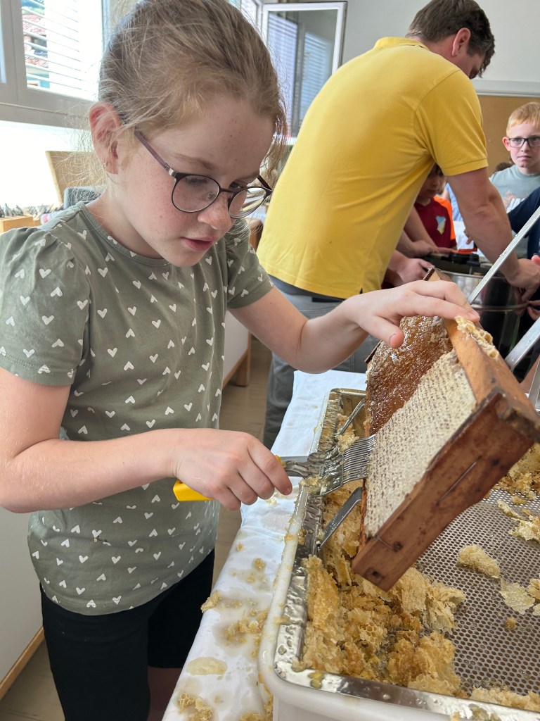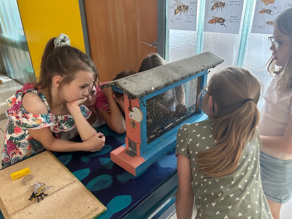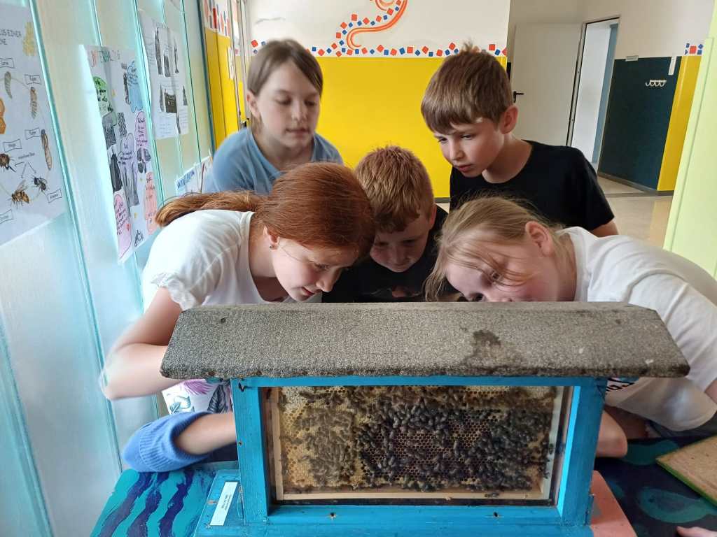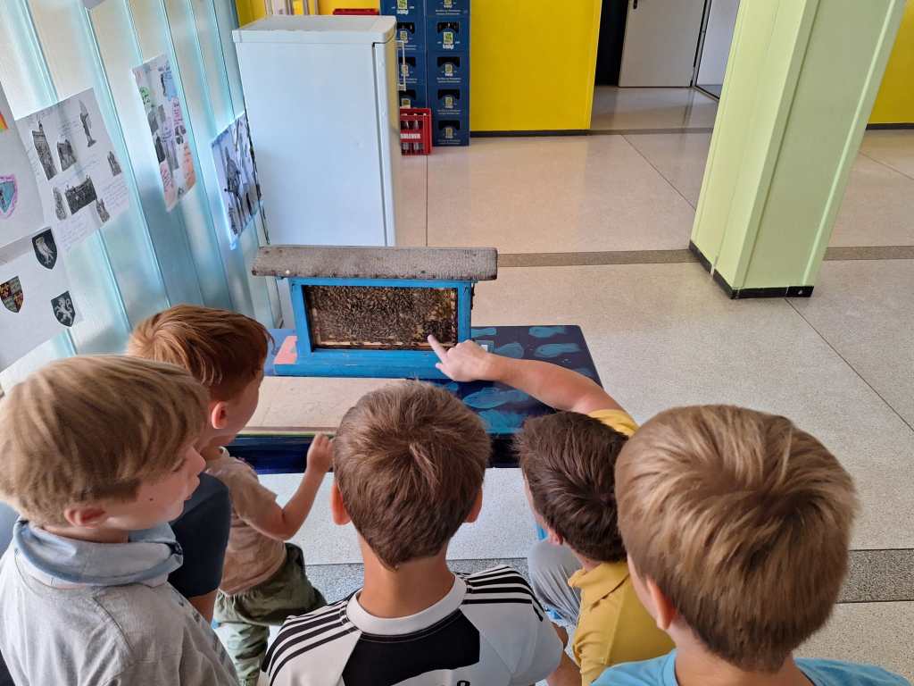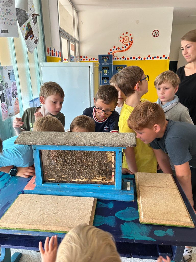 Seit einiger Stunden setzt sich die dritte Klasse intensiv mit dem Thema ,,Biene“ auseinander. Neben einer Facettenbrille, einem Schaubienenstock und einem baldigen Besuch beim Imkerverein, haben die Kinder nun auch zwei Beete mit bienenfreundlichen Pflanzen gebaut. Ein herzliches Danke gilt den Eltern, die dieses Projekt ermöglicht haben.