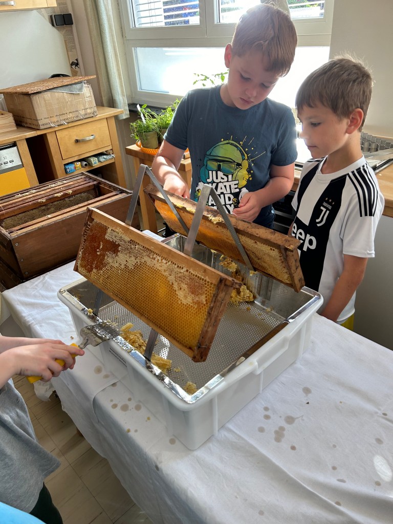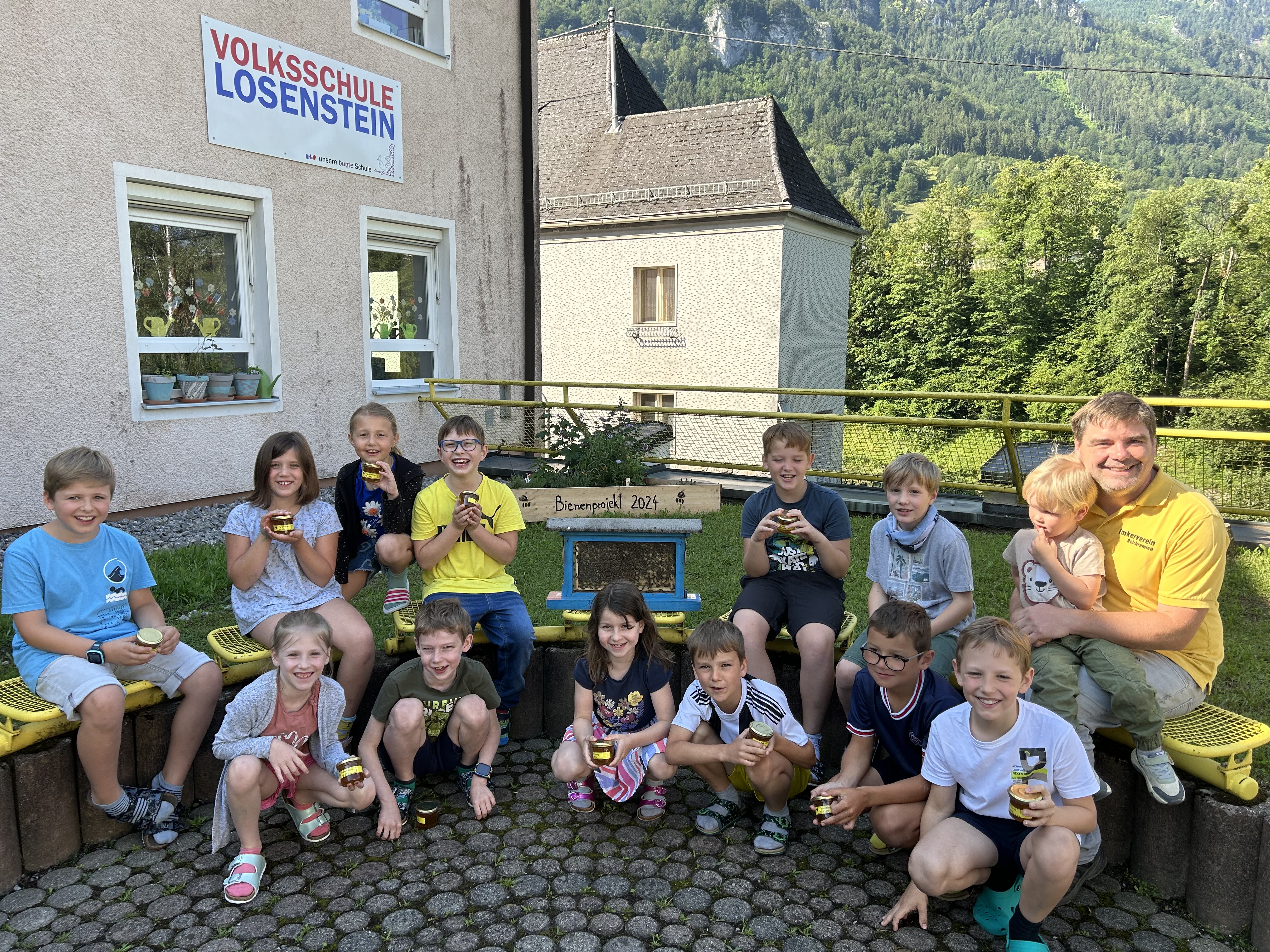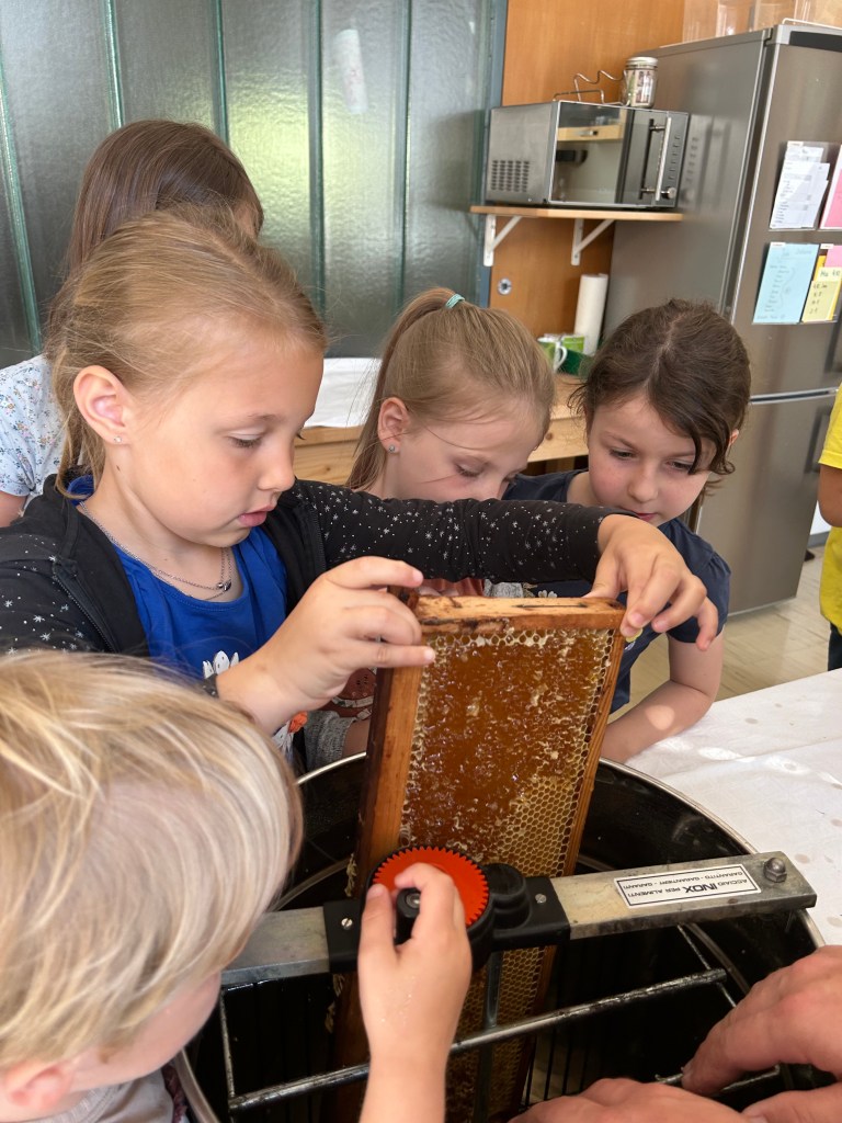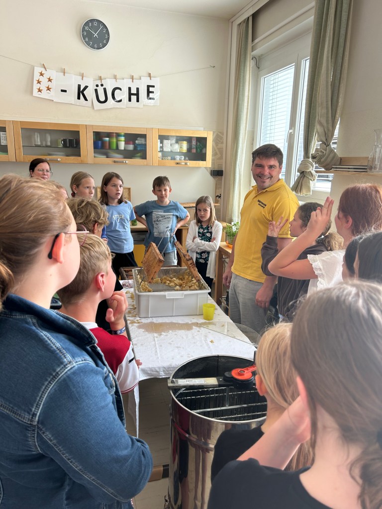 Seit einiger Stunden setzt sich die dritte Klasse intensiv mit dem Thema ,,Biene“ auseinander. Neben einer Facettenbrille, einem Schaubienenstock und einem baldigen Besuch beim Imkerverein, haben die Kinder nun auch zwei Beete mit bienenfreundlichen Pflanzen gebaut. Ein herzliches Danke gilt den Eltern, die dieses Projekt ermöglicht haben.